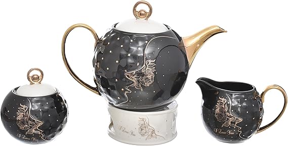 - يوفر هذا الطقم عملية تقديم شاي كاملة، بما في ذلك إبريق الشاي والمبيض ووعاء السكر وأكواب الشاي والصحون، مما يسمح بتجربة شاي متناسقة تمامًا.